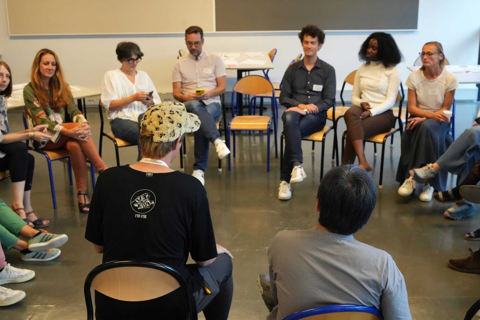 Despite eliminating formal lecture time, we preserved the closing reflection circle. Participants sat together, sharing what they'd learned from the experience.